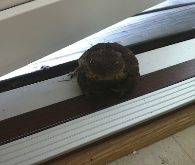 ... skall man visst bjuda på kaffe. Men jag tror inte den här bistra herren (?) var särskilt intresserad. Jag hittade honom i går morse när han var på väg in i vardagsrummet. Jag undrar vart han var på väg. I stället fick han en liten åktur på sopskyffeln till närmaste buskage. Det är kul att bo nära naturen.